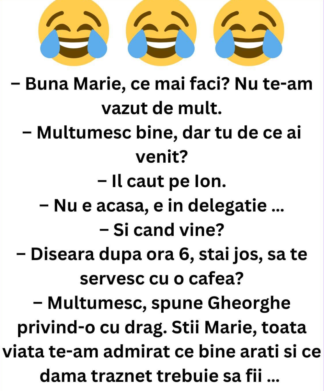 CITEȘTE ȘI URMĂTORUL BANC ⤵️ Soțul, soția și o tânără atrăgătoare iau împreună liftul. Deodată, tânăra se întoarce brusc și îl plesnește pe bărbat.– Nu ți-e rușine, porcule? În fața soției?!Liftul se oprește, iar tânăra iese. Soțul, palid, încearcă să-i explice nevestei.– Maria, îți jur…– Știu, eu am mângâiat-o! CITEȘTE ȘI URMATORUL BANC ⏬ O blondă îşi … Read more