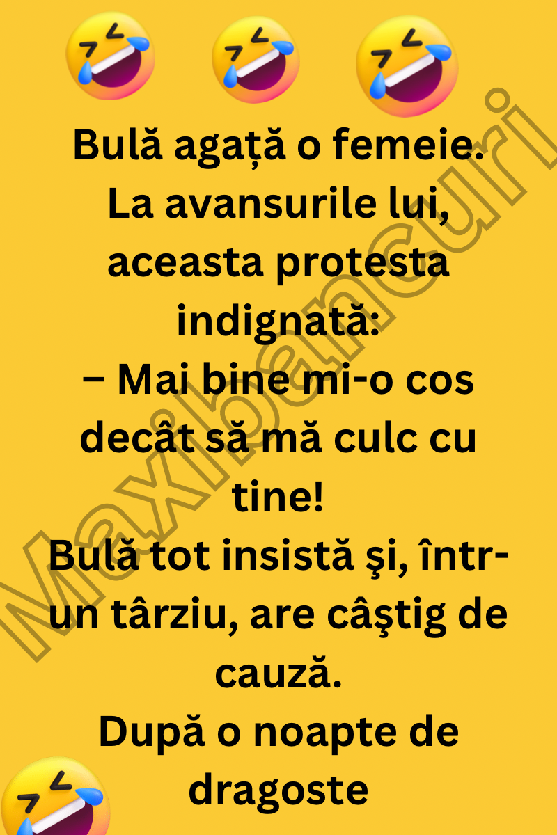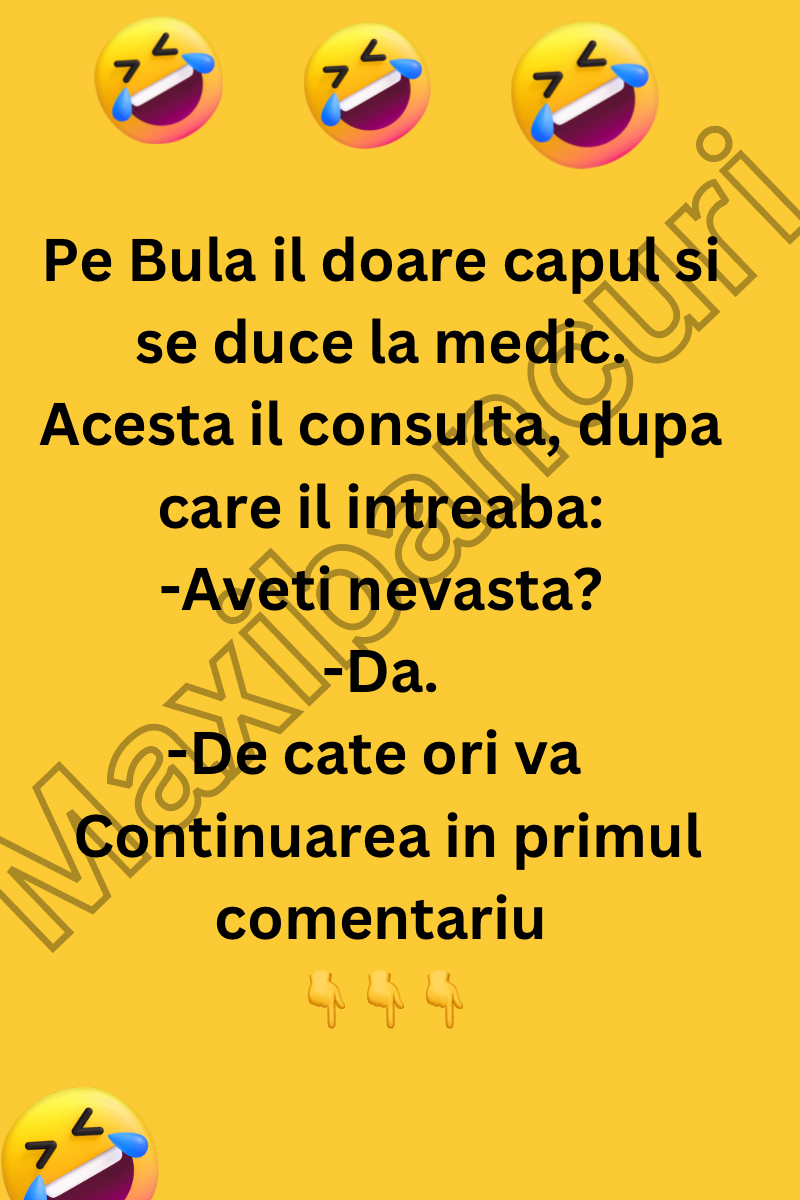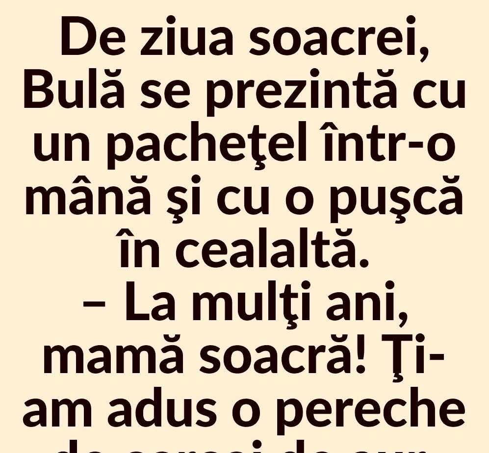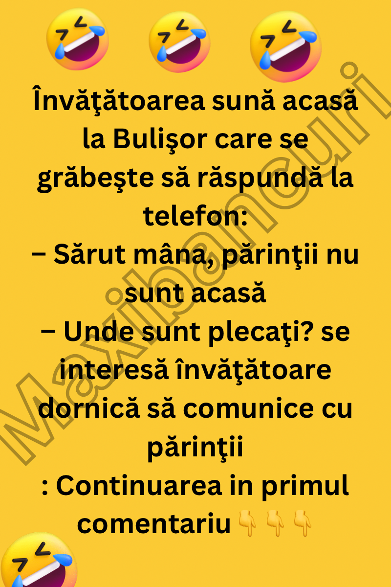 Învăţătoarea sună acasă la Bulişor care se grăbeşte să răspundă la telefon: – Sărut mâna, părinţii nu sunt acasă – Unde sunt plecaţi? se interesă învăţătoare dornică să comunice cu părinţii neastâmpăratului Bulă. – Mama e la morgă, tata la închisoare. Învăţătoare îşi cere scuze şi spune că va reveni. A doua zi scena se … Read more