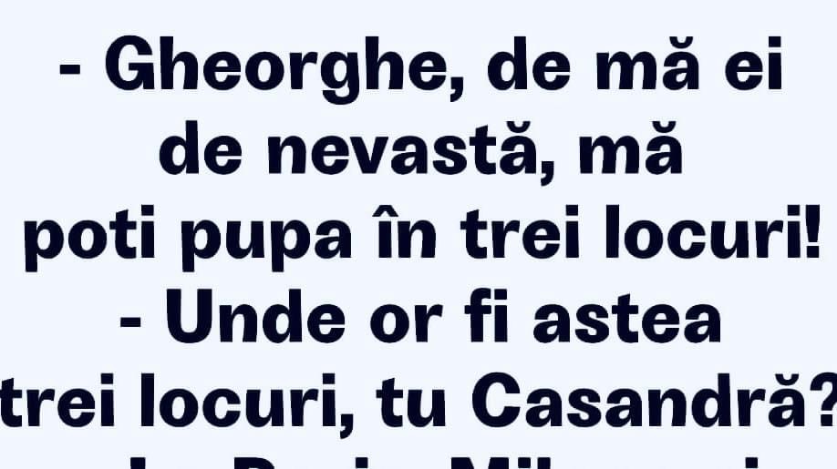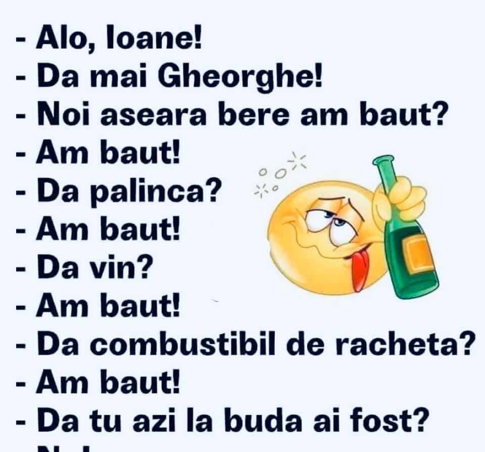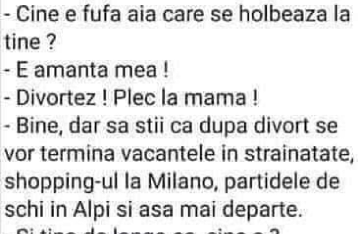 Ioane ai auzit ca Vasile l-a parasit nevasta si l-a lasat fara nici un leu? Apai mai Gheo sa zica multam ca si a mea m-a lasat fara nici un leu dar..