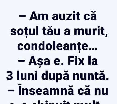 Am auzit ca sotul tau a murit condoleante ! Ase e..Fix la 3 luni dupa nunta.Inseamna ca nu..