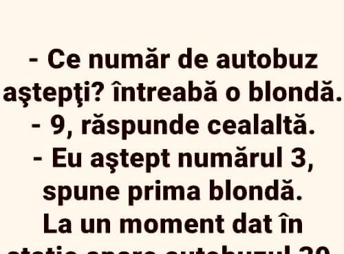 Ce numar de autobuz astepti? Intreaba o blonda ! 9 raspunde cealalta ! Eu astept numaraul 3 spune prima blonda
