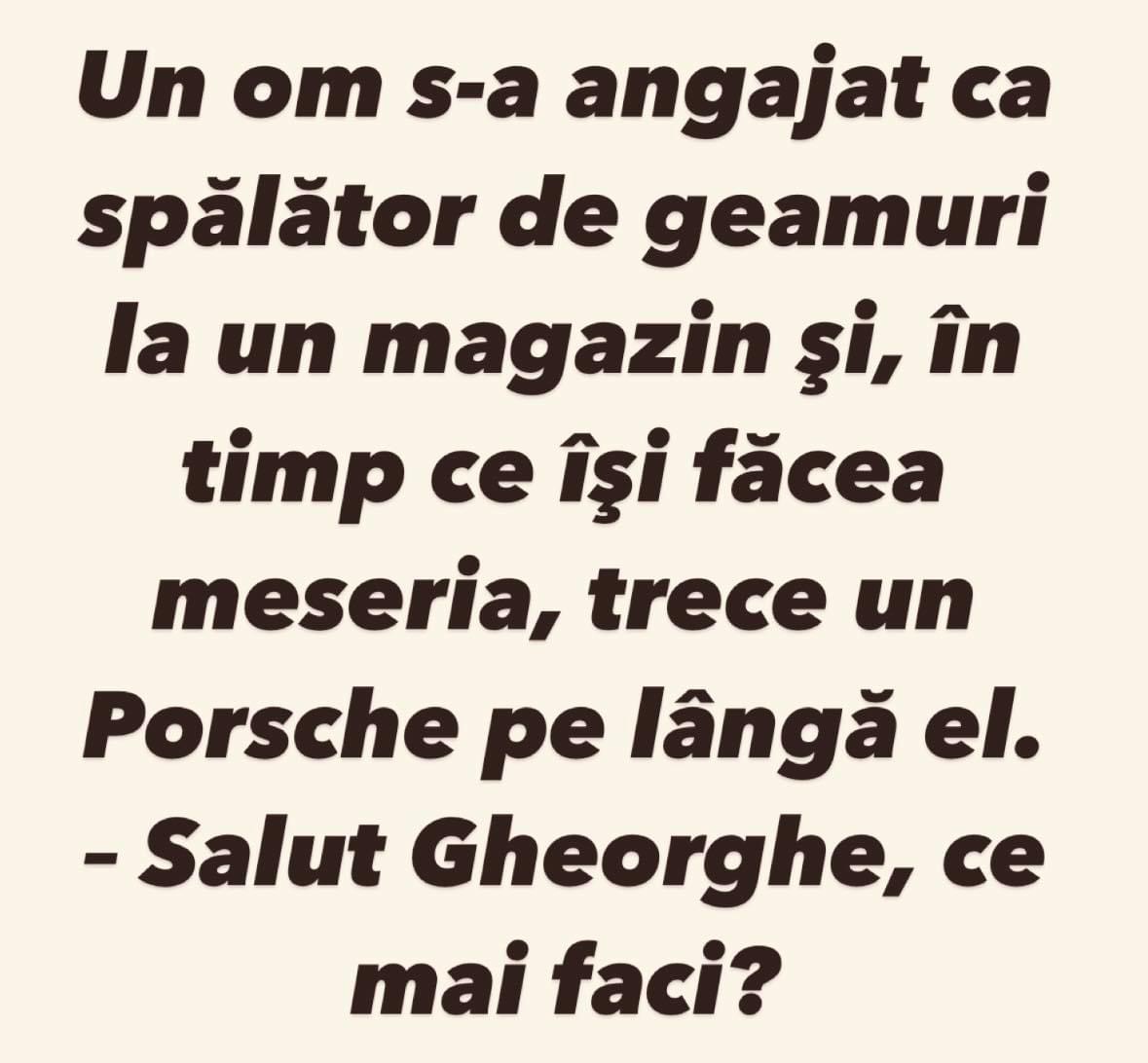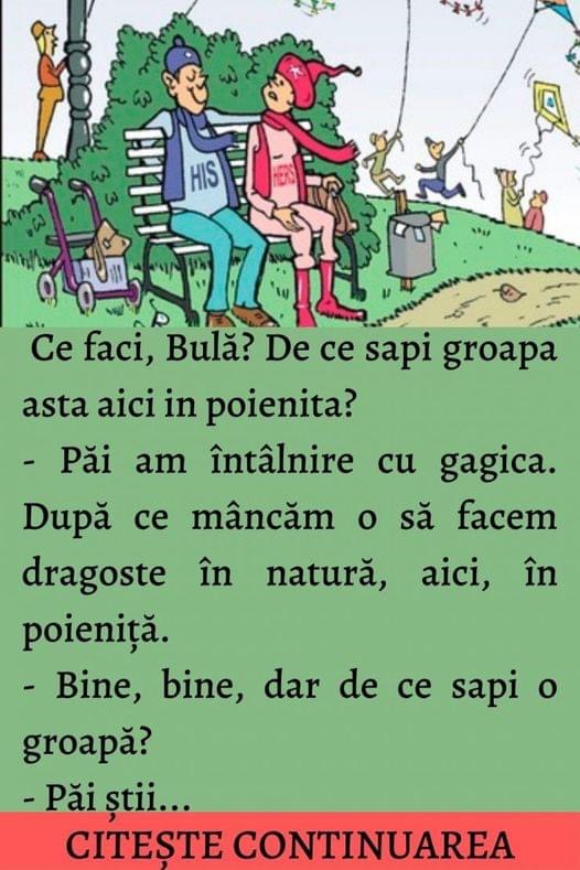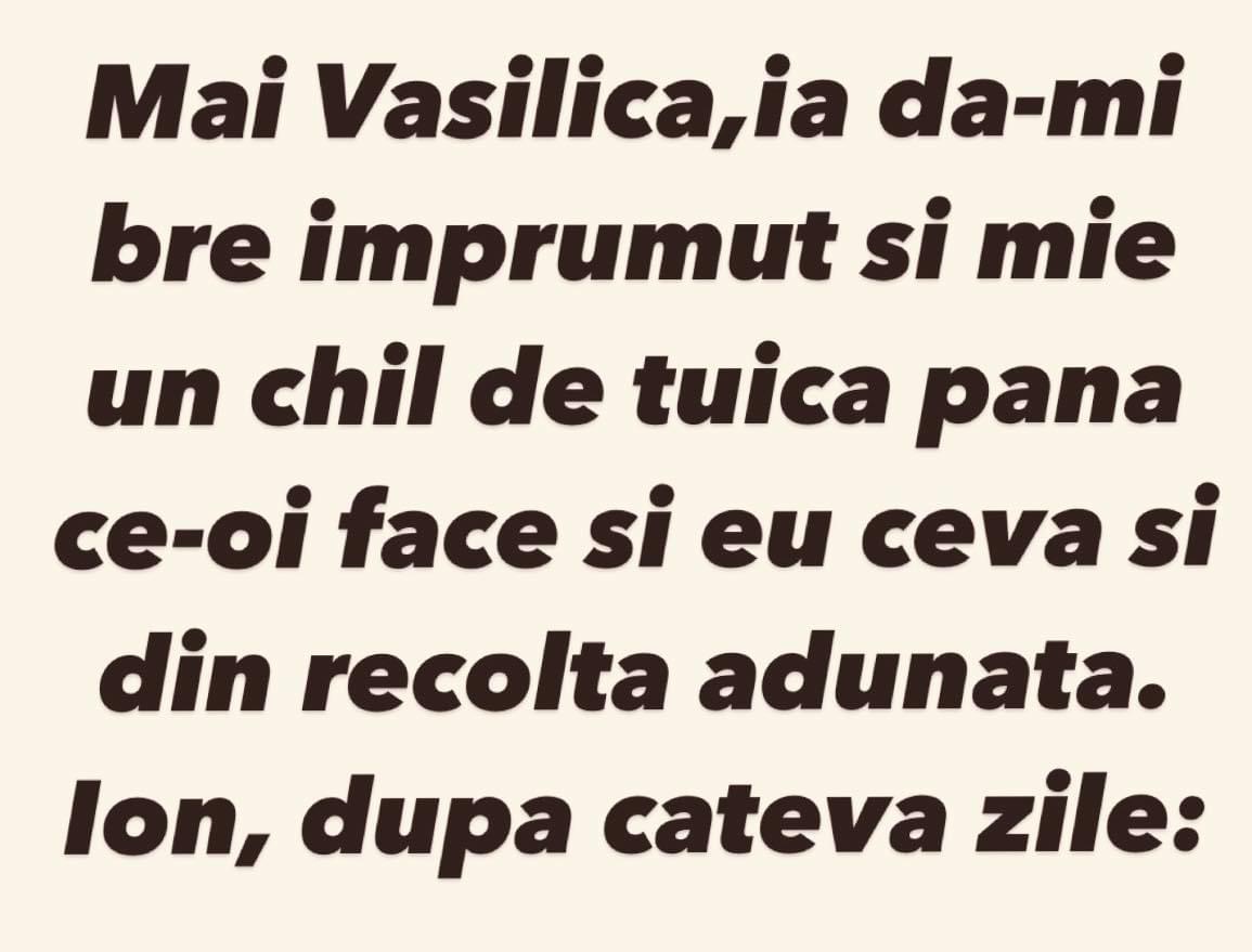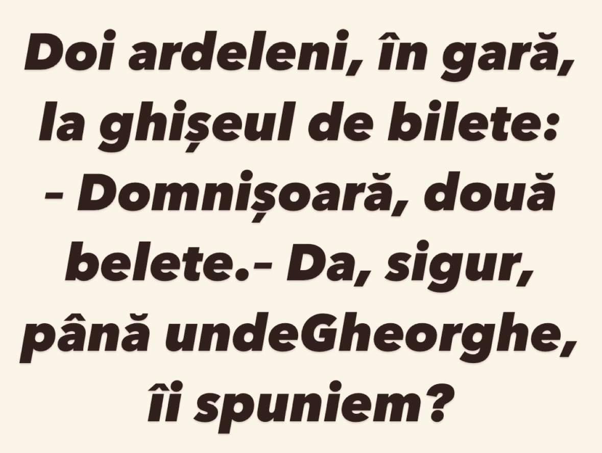 Vine Ion acasă de la oraş şi zice către Maria, hotărât: – – Marie, stinge lumina, trage perdelele şi în pat iute! – Mă Ioane, da mai am de lucru. – Dac-am zis, am zis! Vede Maria că n-are încotro, se conformează. Se pune şi Ion în pat, trage plapuma peste ei şi zice: – No, acum Marie, … Read more