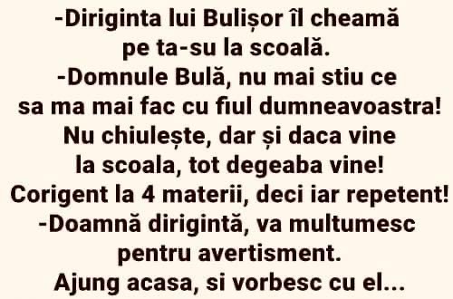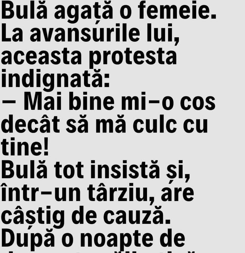 Făt Frumos îi zice calului:– Bă, calule, stai aici pe loc, sub fereastră, eu urc în turn la IleanaCosânzeana, dar, dacă vine zmeul, sar drept pe tine şi să fugim.Calul, ce să zică, asta-i misia lui ingrată! Făt Frumos urcă, după untimp se aud ciocănituri la uşă. Făt Frumos se azvârle pe fereastră,Ileana se aranjează, … Read more
