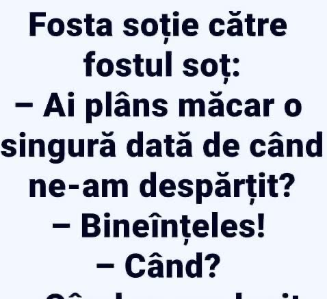 O baba surda se urca in tramvai. La un moment dat vine controlorul – Biletul la control, va rog! – Ce zici maica? – Biletul la control! Baba se intoarce catre o tanara si intreaba: – Ce zice fa maica? – Zice biletul la control pentru ca dansul e controlor.Baba se intoarce suparata catre controlor si zice – Si eu sunt … Read more