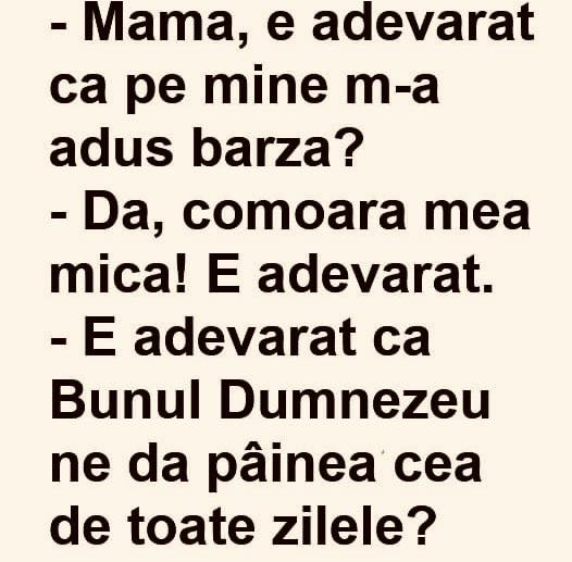 – E adevarat ca Bunul Dumnezeu ne da pâinea cea de toate zilele?