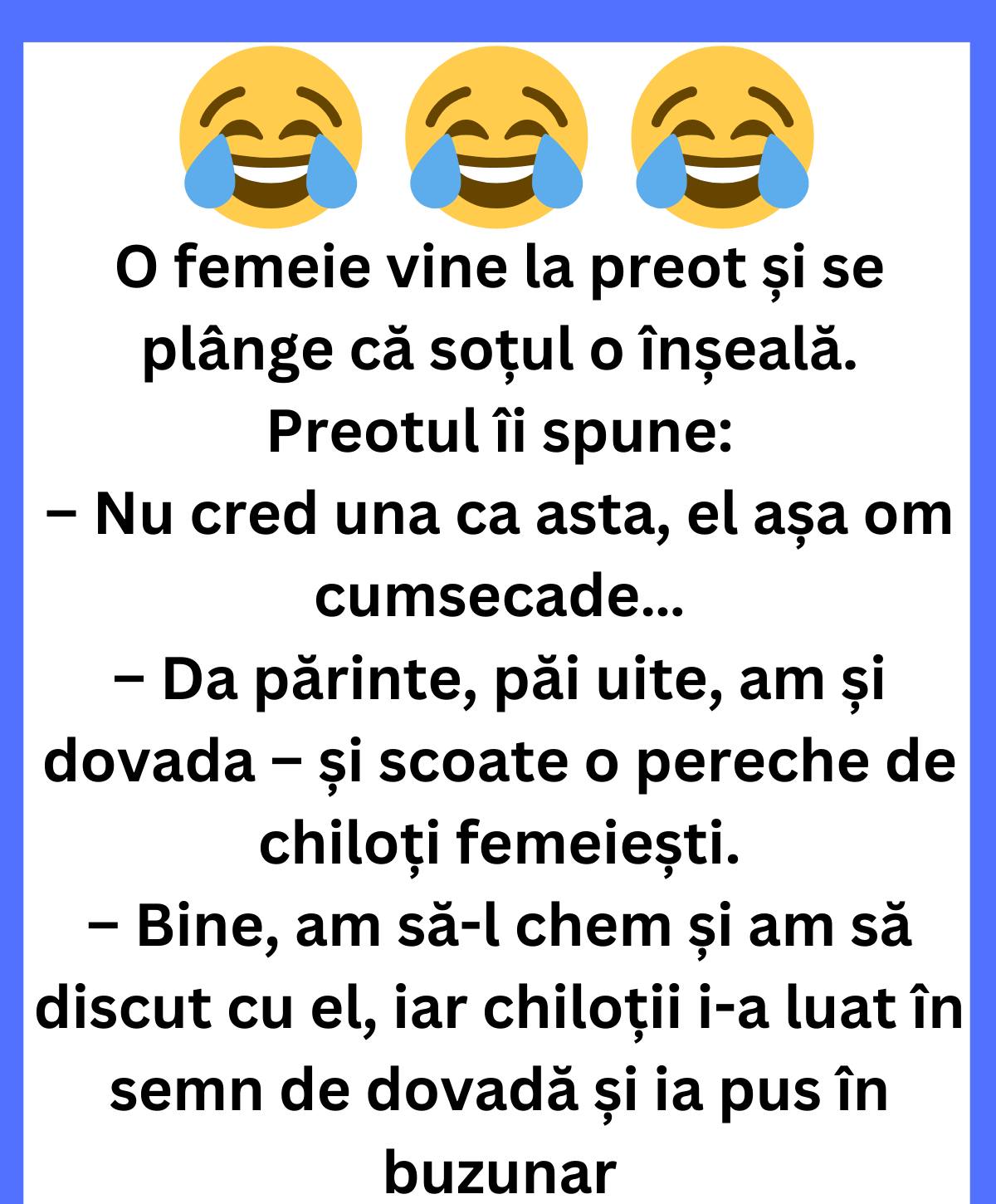 O Femeie Vine La Preot Şi Se Plânge Că Soţul O Înşeală. Preotul Îi Spune: