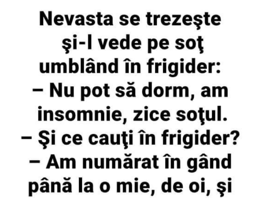 Nevasta se trezeste si-l vede pe sot umbland in frigider: Nu pot sa dorm am insomnie… July 19, 2024 by tooma