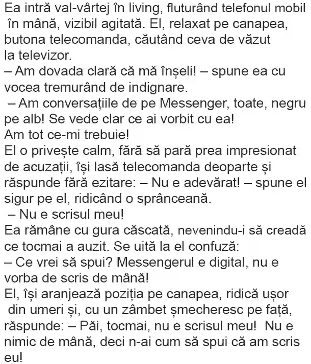 – Uite taică, mi-am inghițit placa și de-o săptămână, de câte ori mă duc la WC și-apoi dau să mă șterg, mă mușcă de degete..!