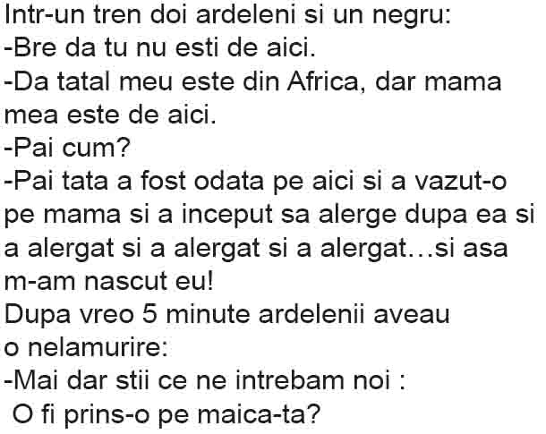Un vânător pleacă într-un safari cu soacra şi cu soţia.Într-o seară soacra se rătăceşte prin junglă, astfel că vânătorul şi soţia pleacă să o caute. După ore de căutări, o găsesc într-un tufiş, împietrită de groază în faţa unui leu care răgea din toţi rărunchii. Văzând asta soţia zice vânătorului:– Hei, ce facem acum?!– Nimic, draga mea, răspunde vânătorul. Leul ăsta s-a băgat singur în treaba asta murdară, aşa că lasă-l să se descurce singur!😆