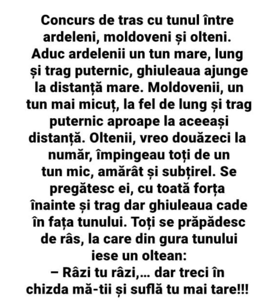 – Bravo, ai doi de zece; da’ ma copii ma, cine stie cum se zice la caldura are media 10 pe anu asta!