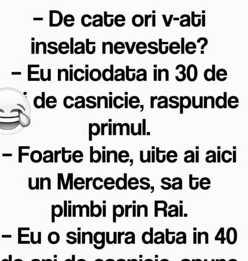 Eu o singura data in 40 de ani de casnicie, spune al doilea.