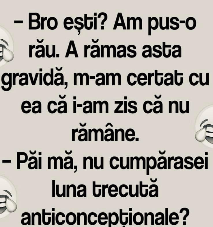 – Păi mă, nu cumpărasei luna trecută anticoncepționale?