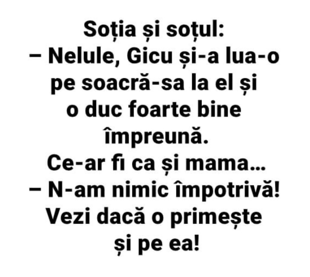 – Pai aseara, cand treceam pe langa dormitorul parintilor, l-am auzit pe tata spunandu-i mamei: