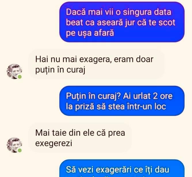 Dacă mai vii o singură dată beat ca aseară, jur că te scot pe ușă afară!