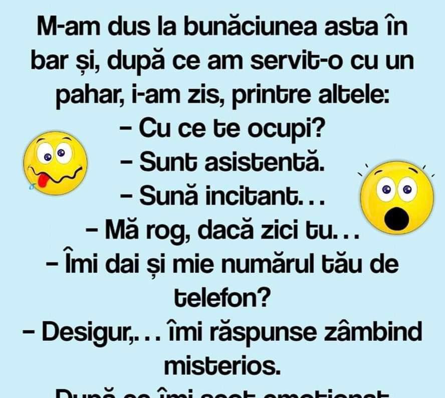 După ce îmi scot emoţionat telefonul din buzunar, îmi zise: