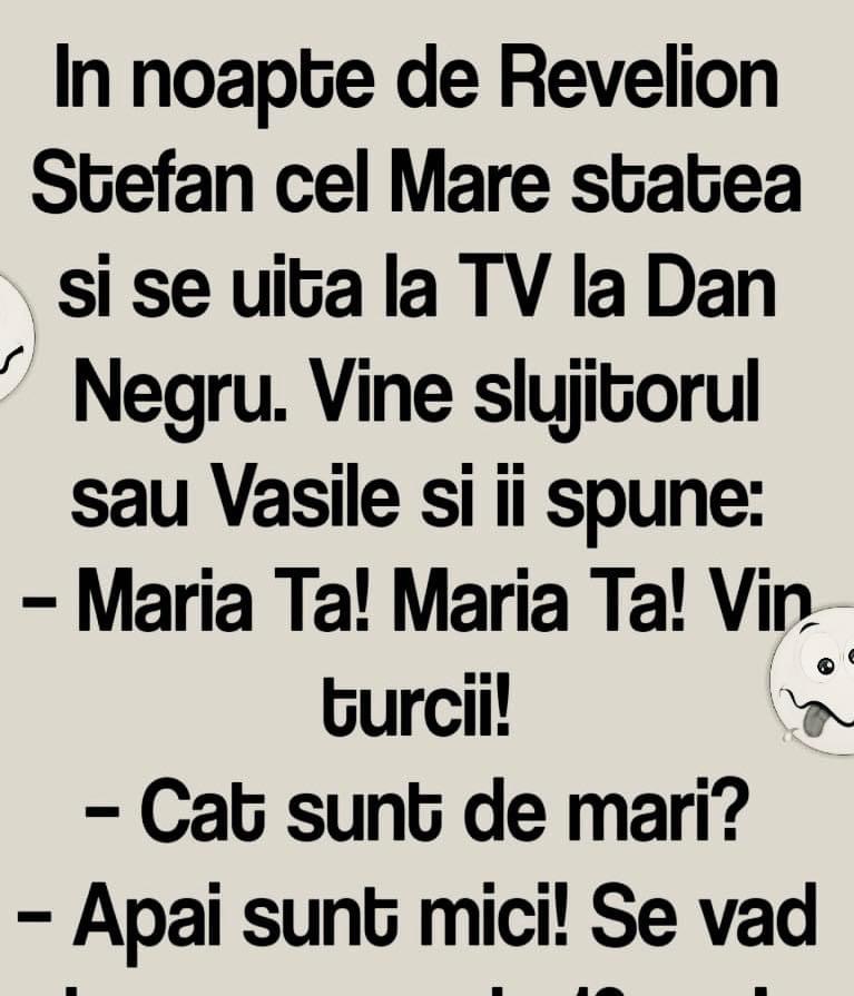 In noapte de Revelion Stefan cel Mare statea si se uita la TV la Dan Negru. Vine slujitorul sau Vasile si ii spune: