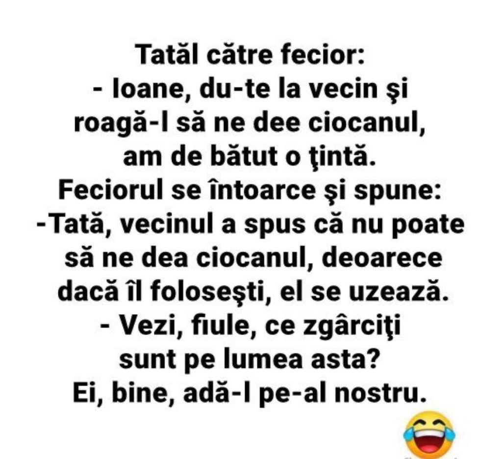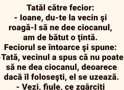 – Pai aseară, când mâncam, mi-a zis: „Știi, noi n-am mai făcut dragoste de 3 luni”.