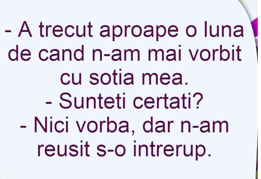 – Îi bine, mă, i-o dat veterinaru’ tablete şi acuma îşi face treaba.