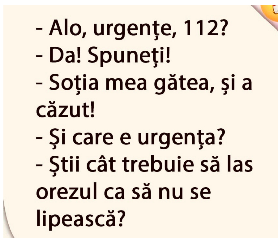 – Parinte, iarta-ma, dar trebuie sa marturisesc ca eu nu port chiloti pe sub roba calugareasca…- Pacatul iti va fi iertat, fata mea, dar trebuie sa zici de 5 ori Tatal Nostru, de 5 ori Ave Maria si sa faci de 5 ori «roata tiganului» prin fata altarului…