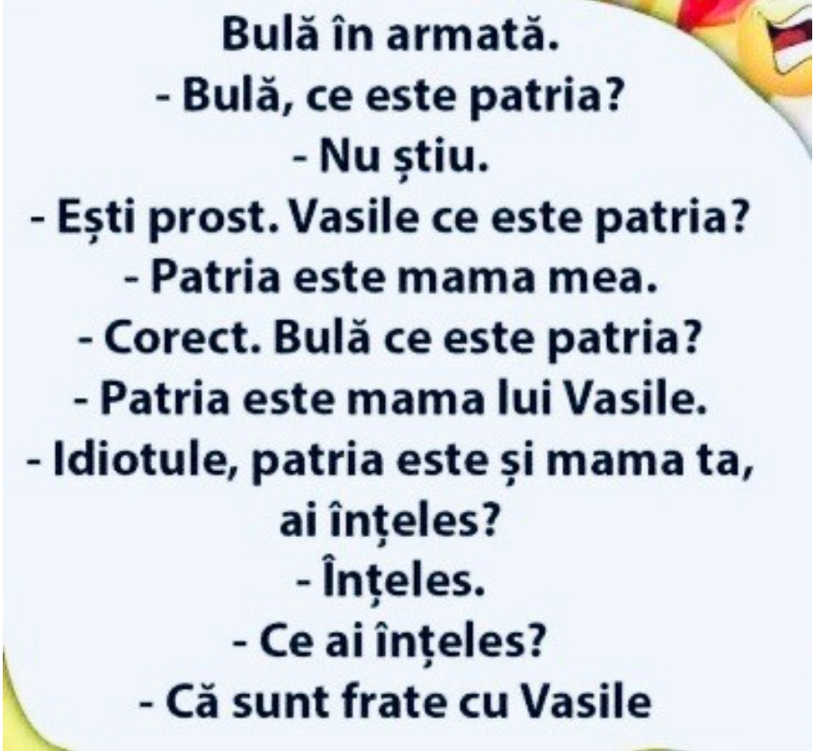 Al treilea taur raspunde: „Pe naiba! Poate sa-mi ia toate vacile din partea mea. Eu vreau sa ma asigur ca stie ca sunt taur”