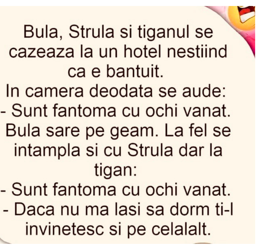 Cica s-a dus Bula în pauza si a scris apasat pe tabla: “Eu sînt cel mai tare barbat. Bula.”Învatatoarea, o femeie tînara si draguta, intra în clasa, se uita la tabla si citeste. Apoi îi spune lui Bula:- Dupa ora, sa ma astepti în fata cancelariei.În pauza, înainte de a se duce la cancelarie, Bula le spune colegilor:- Ati vazut, mai baieti, ce importanta este reclama?😇