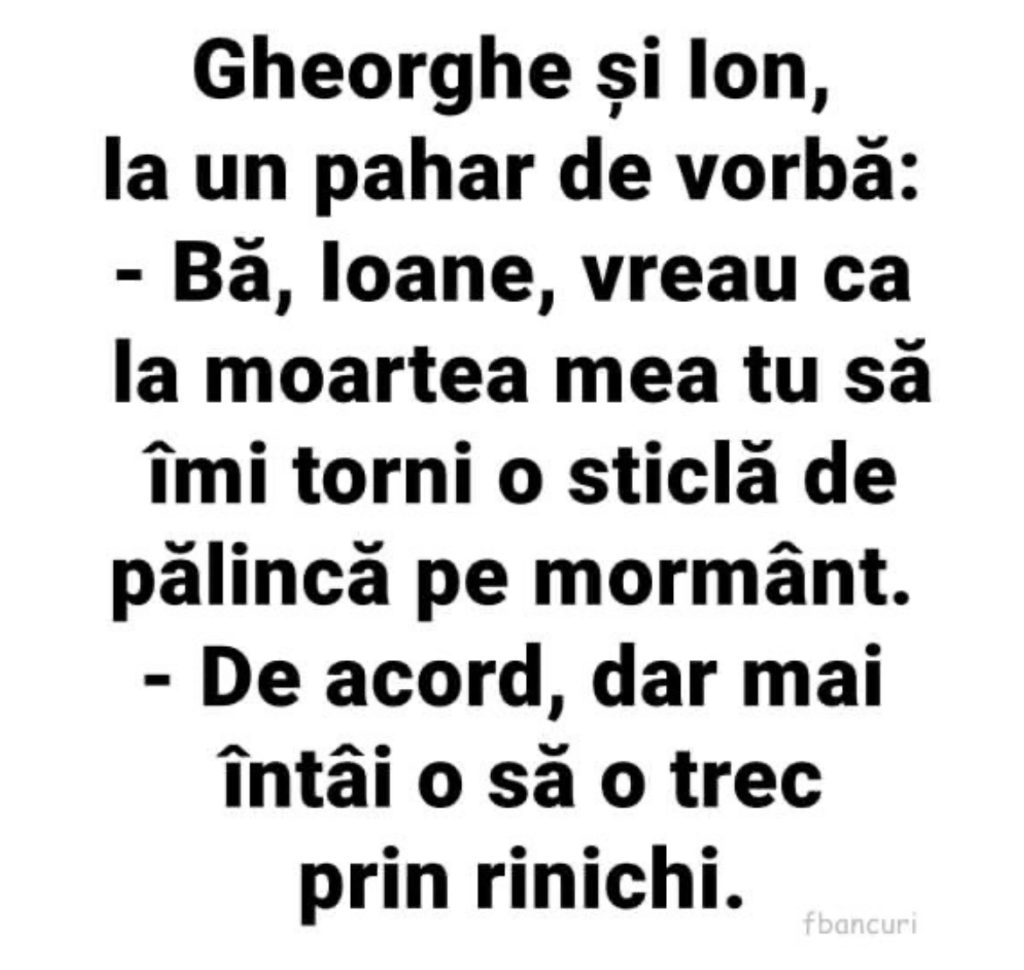 – Din crestet pana la brau n-am nimic de vamuit, fiule.
