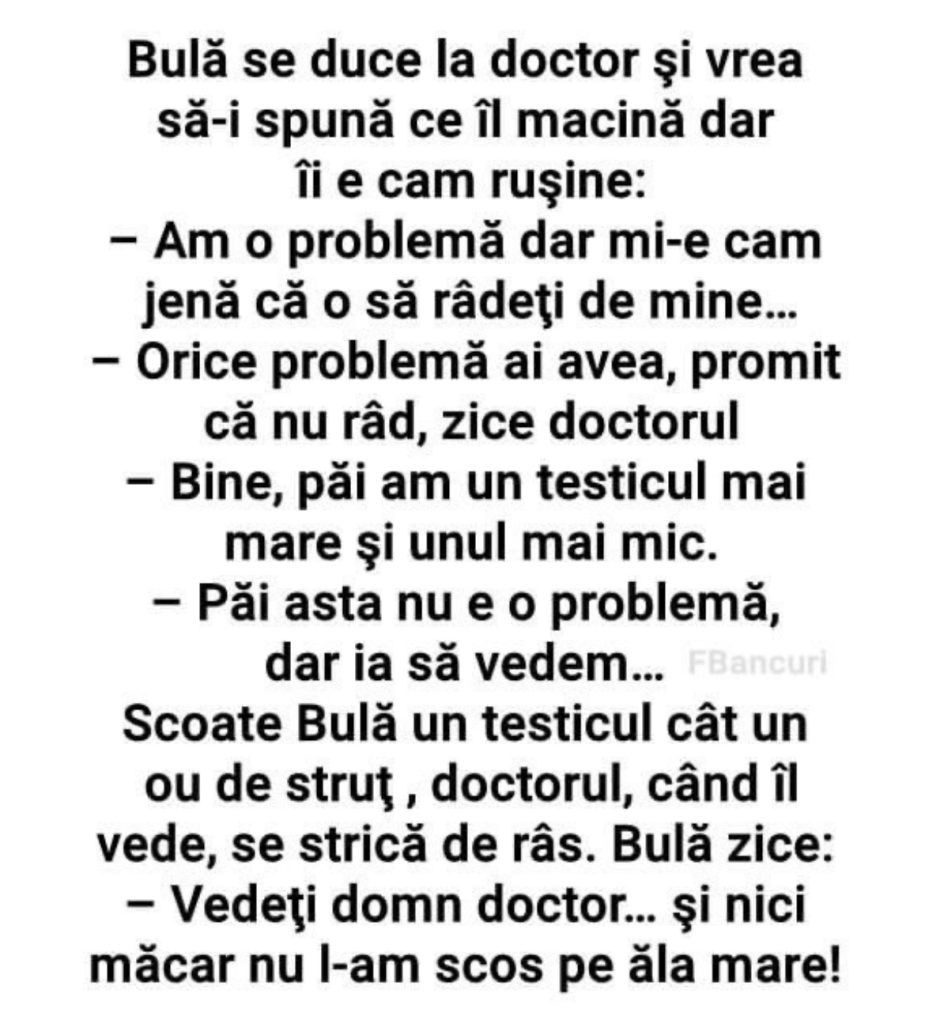 Bula se duce la doctor si vrea sa-i spuna ce il macina dar ii e cam rusine: Am o problema dar mi-e cam jena..