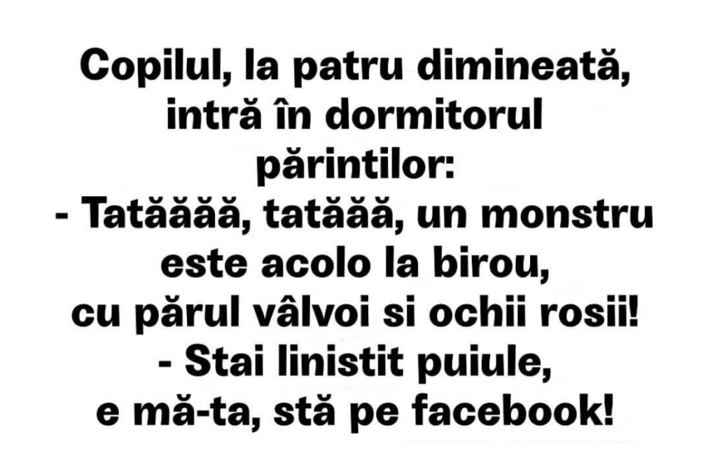 -Hai, Mişule, fii om serios, avem o groază de treburi de făcut azi! Mi se mai întâmplă şi mie, dar ştii cum fac? Trag o partidă bună de s3x cu nevastă-mea şi mă înviorez extraordinar, capăt o energie fantastică! Hai, tinere, fă ca mine şi vino la serviciu!