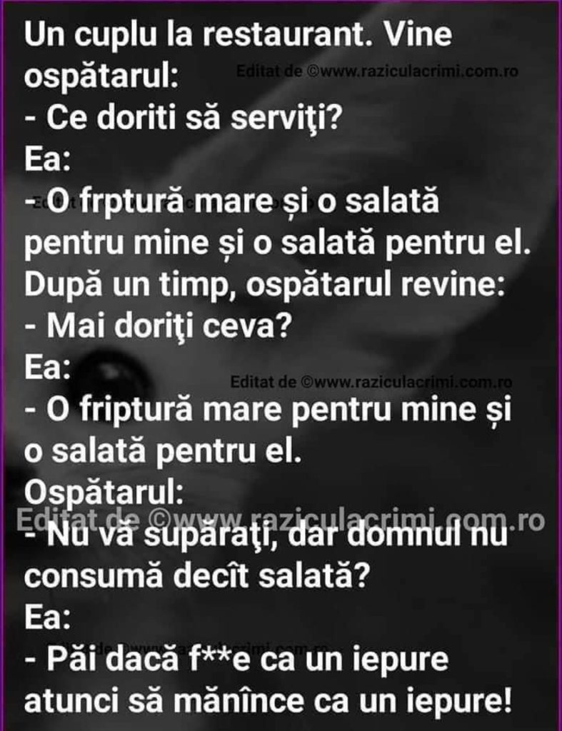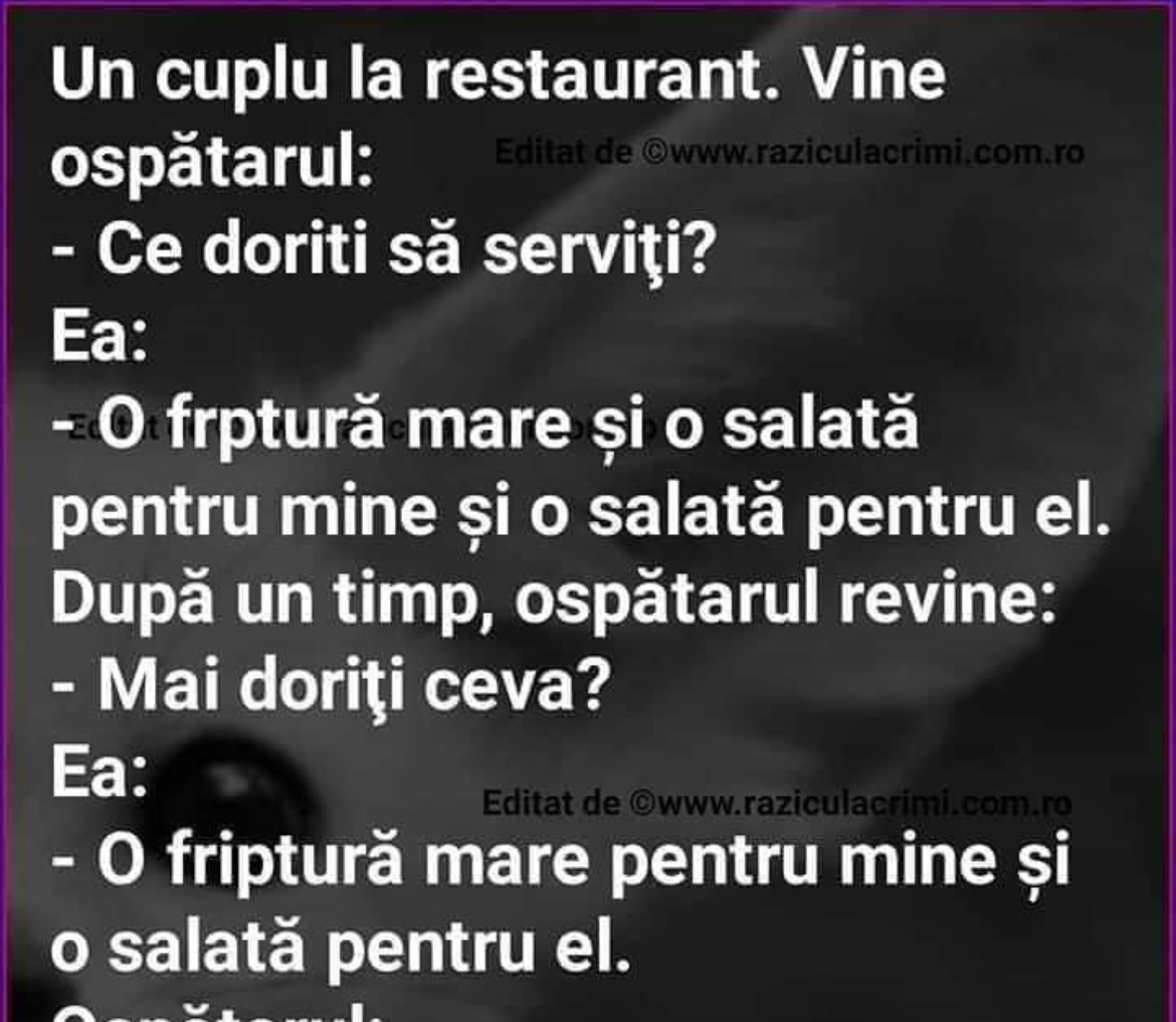 – Oooo, ce teapa am luat, doar eu n-am nici o sora!, asa ca se intoarce la munca.