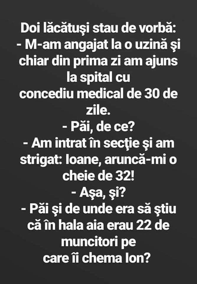 – Vasile!!! Dă jos ultimele 3 etaje de la casă, vinde elicopterele şi cumpără Mertzane, iar câinele du-l în casă că lanţul lui trebuie să-l port eu.