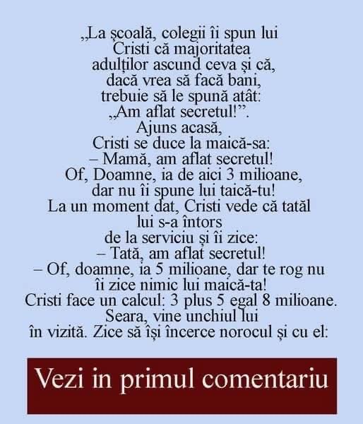 – Of, doamne, ia 5 milioane, dar te rog nu îi zice nimic lui maică-ta!