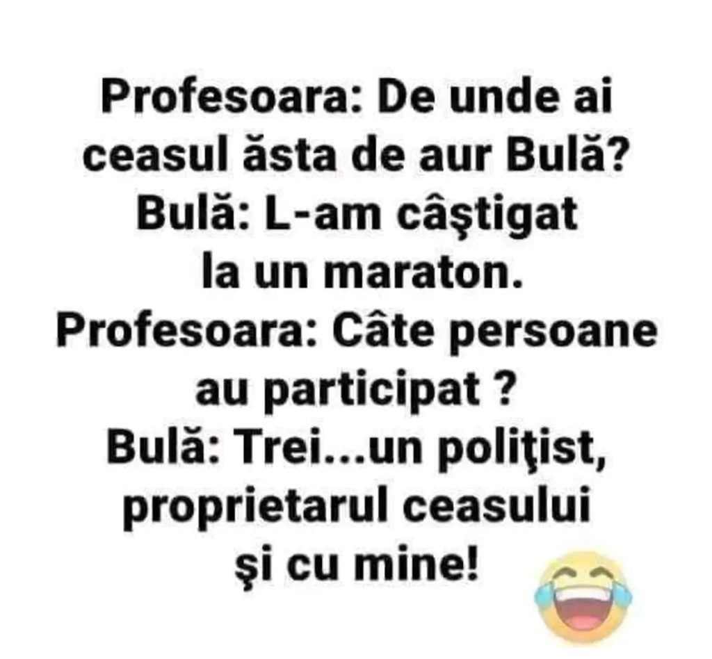 La care politistul indignat raspunde:-Ce vrei babo, ti-e ciuda ca câstig…