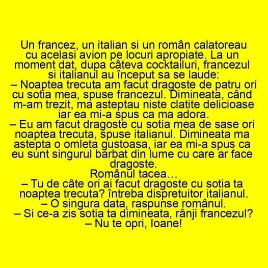 – Am cunoscut o englezoaica si cu toate ca nu stiu engleza si nici ea romana, ne-am inteles de minune.