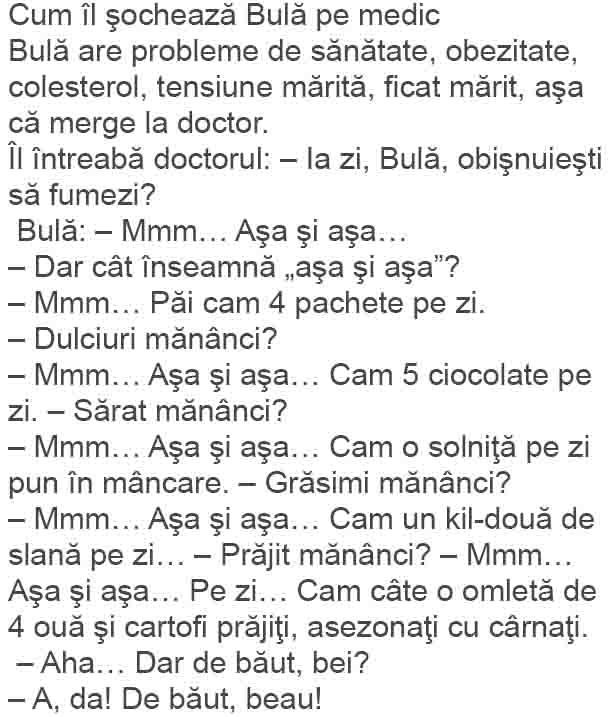 Doctorul: – Bine, bine! Dar si urechea dreapta-i arsa!?