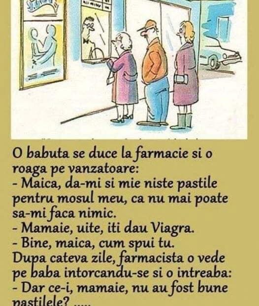 – Maica, da-mi si mie niste pastile pentru mosul meu, ca nu mai poate sa-mi faca nimic.