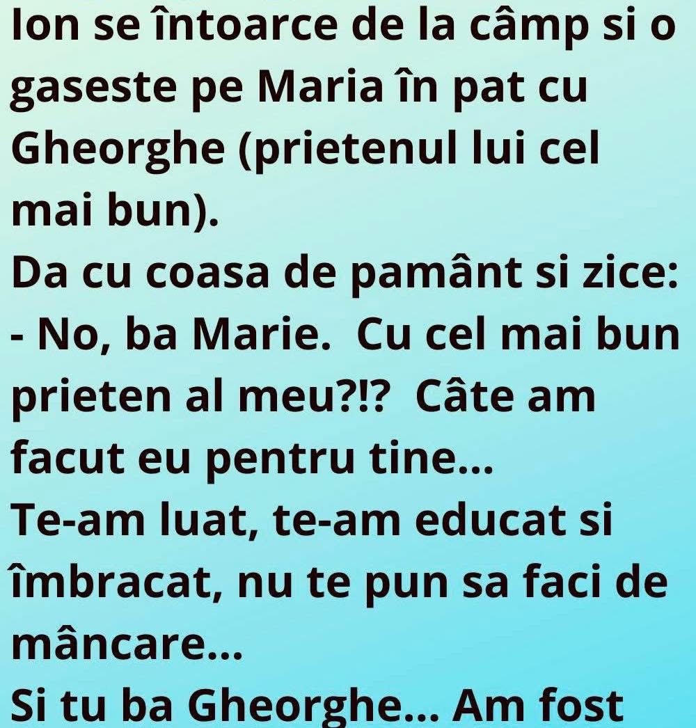 – No, ba Marie. Cu cel mai bun prieten al meu?!? Câte am facut eu pentru tine…