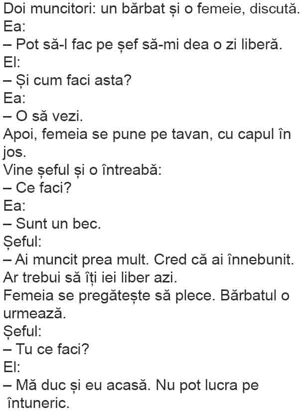– Păi, cum să fie, măi Bulă?! Aşa cum ai lăsat-o, este gravidă în luna a cincea!