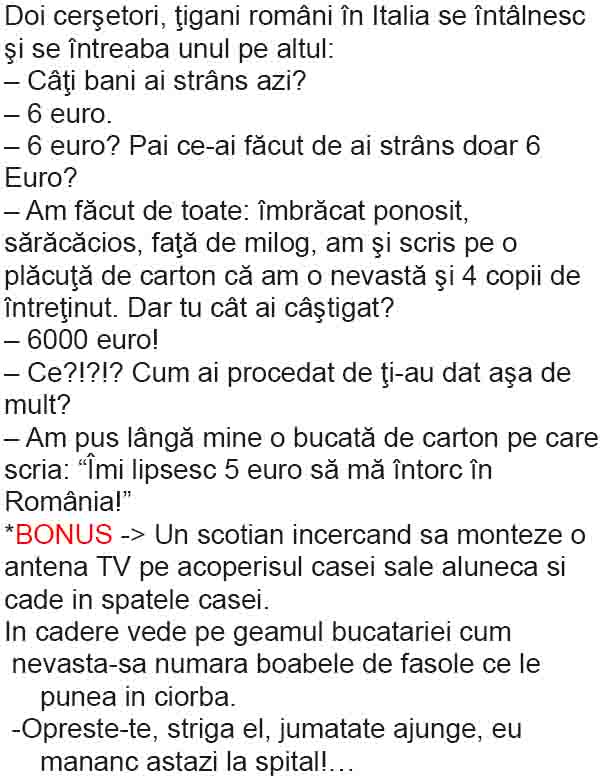 – Ei, sunt tot felul de nebuni, ii raspunse nevasta. Nu-i mai baga si tu in seama…