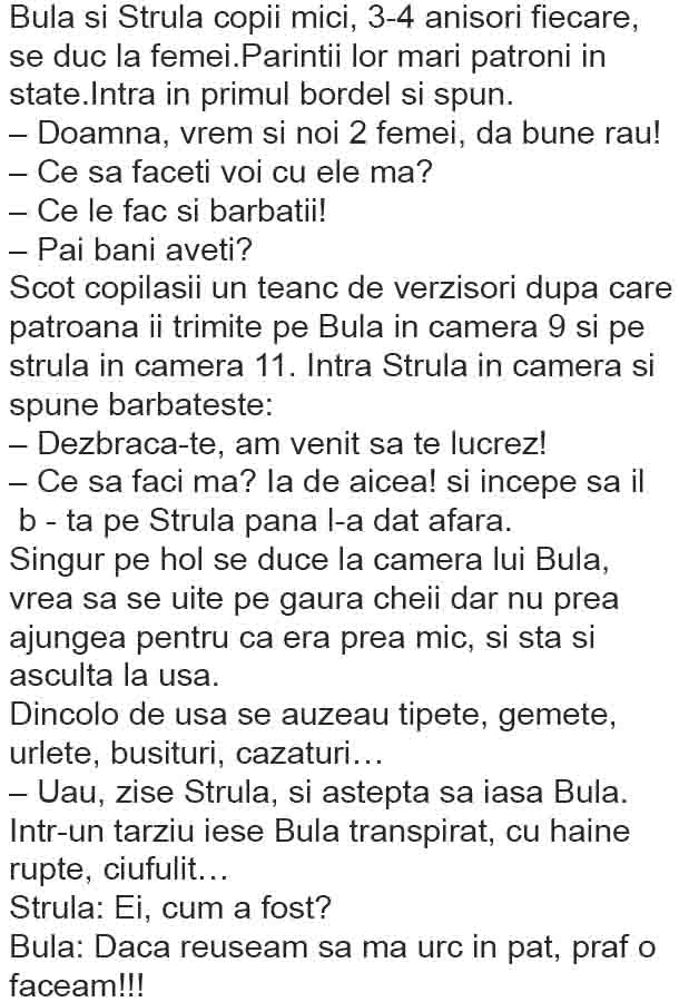 Sotia iar se duce si muta masina pe partea respectiva. O saptamâna mai târziu: “Astazi o sa fie 12-14cm de zapada. Va rugam sa parcati…..” Si se întrerupe curentul.Sotia suparata si ingrijorata intreaba:– Dragul meu, nu stiu ce sa fac. Pe ce parte a strazii trebuie sa parchez masina?
