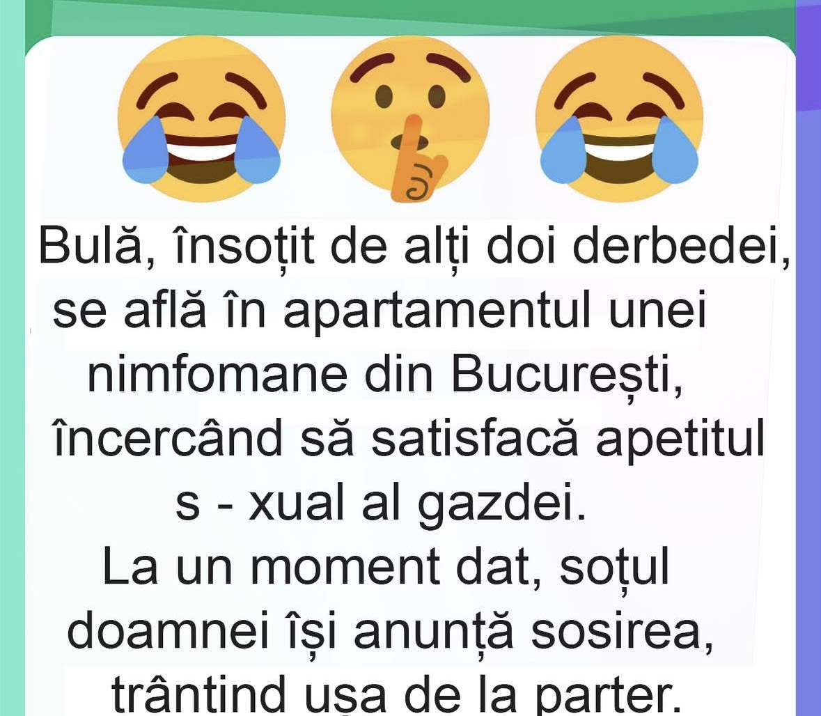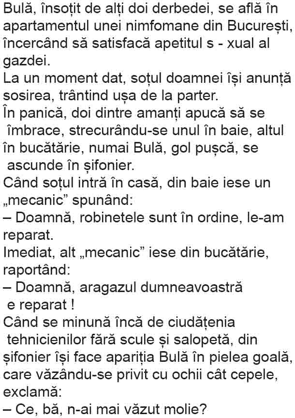 – Nu, domnule judecator! Este pentru compatibilitate: Mie imi plac filmele, sotului meu la fel! Imi place sa merg la plaja, si lui de asemeneal! Imi place sa merg la teatru, el la fel! Mie imi plac barbatii, si lui la fel!!!
