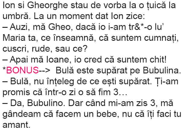 – Si mai vreau, Marie, ca dupa ce m-oi duce sa te mariti cu Gheorghe!