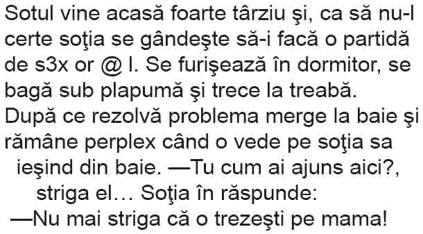 – Ei. zice maica-sa, spune repede, cum a fost?