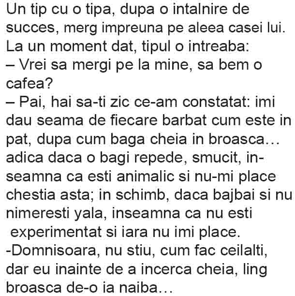 – Domnule doctor, soţul meu şi soţia dumneavoastră ne înşeală, haideţi să ne răzbunăm înşelându-i şi noi doi!