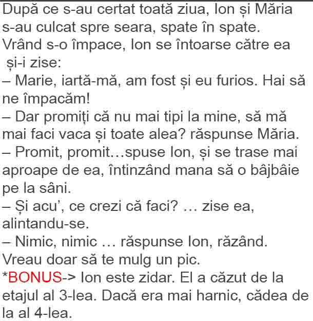 - Ce înseamnă asta? Maria strigă cu putere: Ioaneeeee! Şi apare Ion înalt de un metru şi niţel.