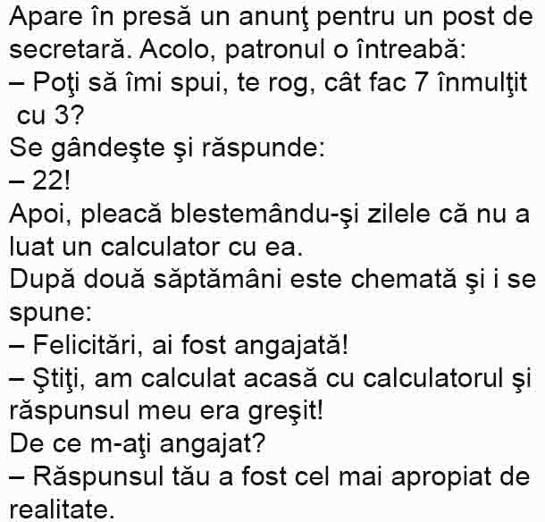 Acest raspuns bizar trezeste suspiciunea vamesului asa ca intreaba mai departe: