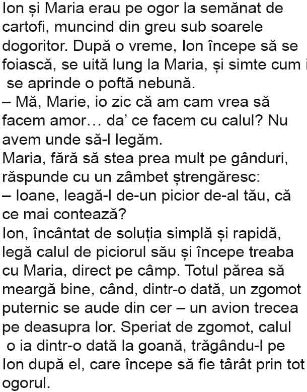 – Ioaneeeee…. Intoarce-te pe spate ca scoti toti cartofii din pamant!
