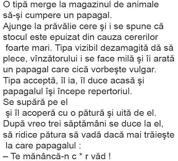 – Uf, bine atunci draga mea, vreau ca tu sa faci ceva pentru tati: lasa receptorul pe masa, alerga la etaj si bate la usa dormitorului si striga la mami: „Mami, mami, masina lui tati tocmai a intrat în parcare!”