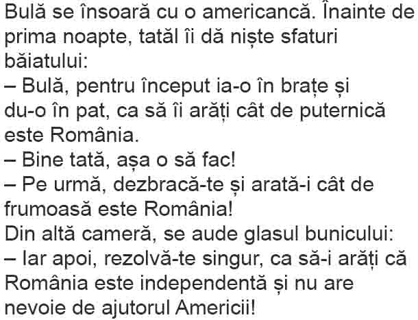 – Draga mea, cu cât e mai mare, cu atât e mai prost bărbatul!