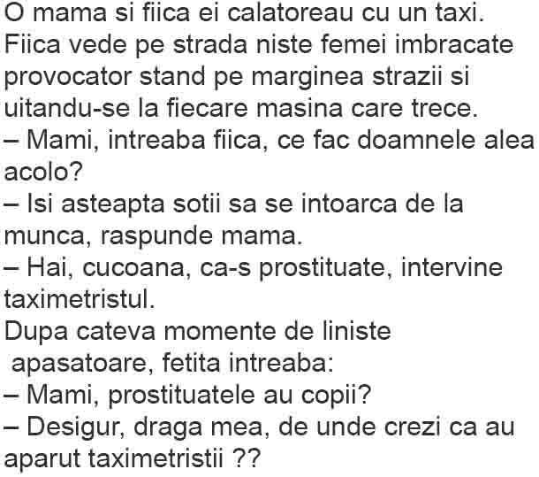 – Nu, eu vroiam să te întreb de ce porţi papucii calugăriţei Maria?