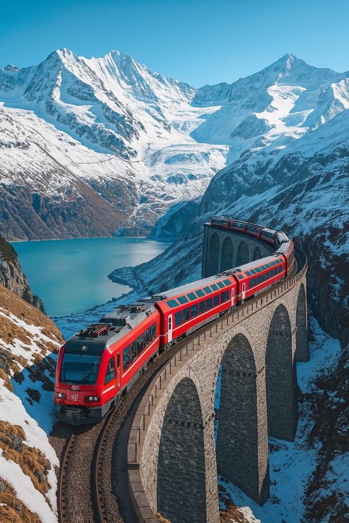 Bernina Express nu este doar un mijloc de transport, ci o operă de artă în mișcare, care traversează munții printr-o rețea de viaducte și linii feroviare ingenios construite. De fiecare dată când trenul înaintează, se deschide în fața pasagerilor o nouă scenă: lacuri turcoaz, pâlcuri de pădure, stânci abrupte și gheață eternă.